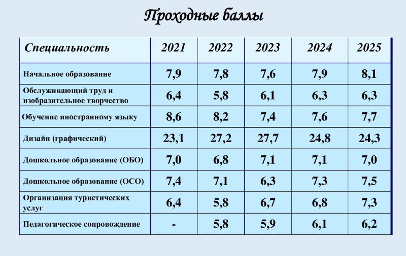 | Обслуживающий труд и изобразительное творчество | учитель | учреждения образования разного типа в качестве учителя трудового обучения и изобразительного искусства, педагога-организатора, воспитателя, руководителя кружка (студии) декоративно-прикладного искусства, на промышленных предприятиях | Конкурс среднего балла документа об образовании | 25 (бюджет) | 2 года 10 мес. |