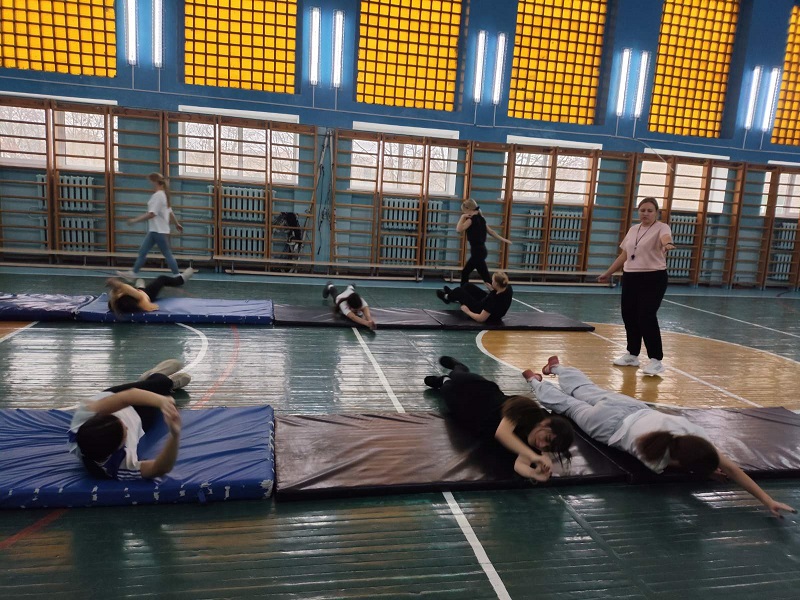 попеременным сгибанием ног» — была посвящена разделу «Гимнастика». Целью занятия было не только совершенствование техники акробатических упражнений, но и