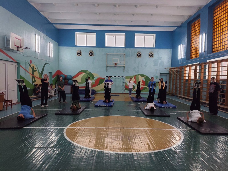 преподавателя обучающиеся отрабатывали сложные элементы: группировки, перекаты, кувырки и, конечно, стойку на лопатках. Использование гимнастических матов и